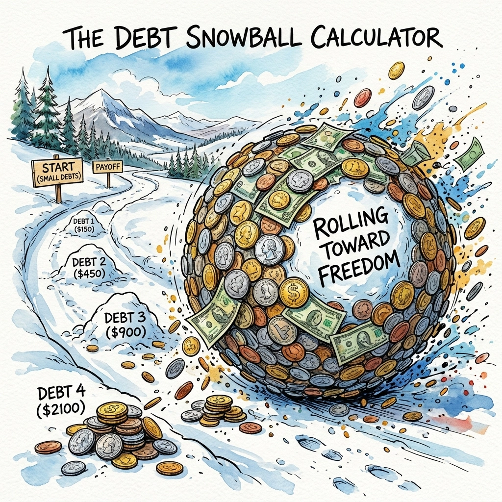 デイブ・ラムジーのスノーボール・メソッドで完済日を計算。負債を整理し、月次の返済スケジュールを可視化します。
